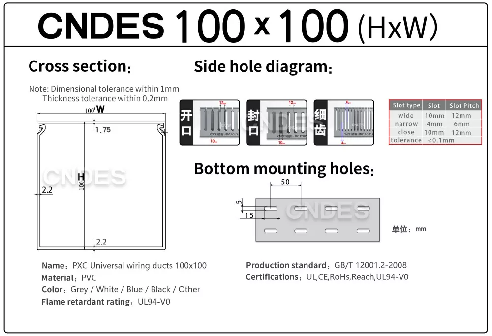 ЦНДЕС је професионални произвођач носача каблова са 24 године искуства, специјализован за производњу прилагођених ПВЦ канала за ожичење са отвореним уторима висине 100 мм. Овде ћемо представити наше производе из серије носача каблова висине 100 мм.