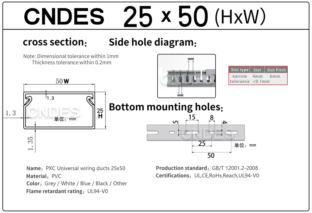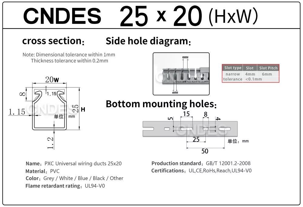 Кроз нашу независно развијену опрему за високо прецизну штанцање, у комбинацији са јединственим сегментираним аутоматским процесом сечења, ЦНДЕС може флексибилно да производи производе у више спецификација, укључујући ПВЦ канале за контролну таблу са прорезима високих перформанси од 25 мм, задовољавајући различите потребе купаца у контролним орманима и електричним системима.