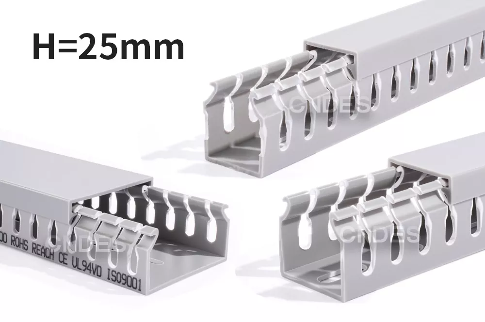 Овај производ је ПВЦ канал за ожичење ниске висине дизајниран да организује, штити и води електричне каблове унутар контролних панела. Висина од 25 мм омогућава да се угради: