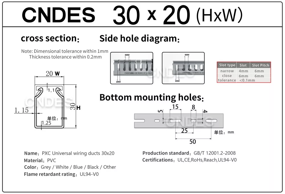 Прилагођени ПВЦ канал за управљање кабловима висине 30 мм од ЦНДЕС-а је дизајниран за ефикасно, компактно и безбедно постављање каблова у разним индустријским, комерцијалним и стамбеним окружењима. Идеалан за апликације са ограниченим простором, овај канал обезбеђује да ваше ожичење буде организовано, заштићено и лако доступно.