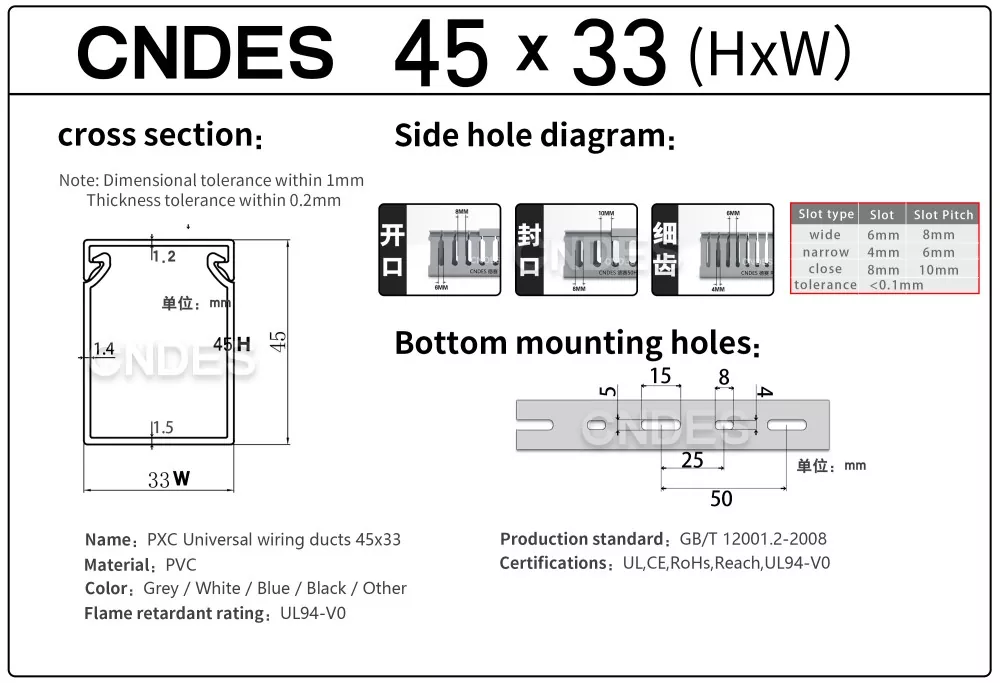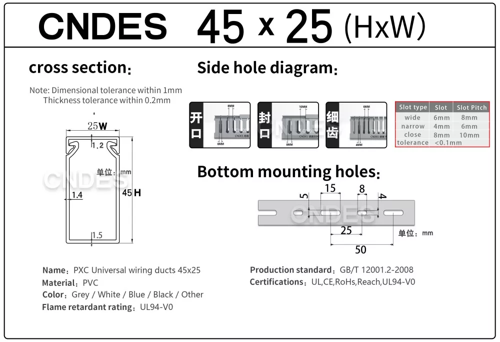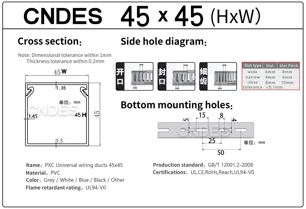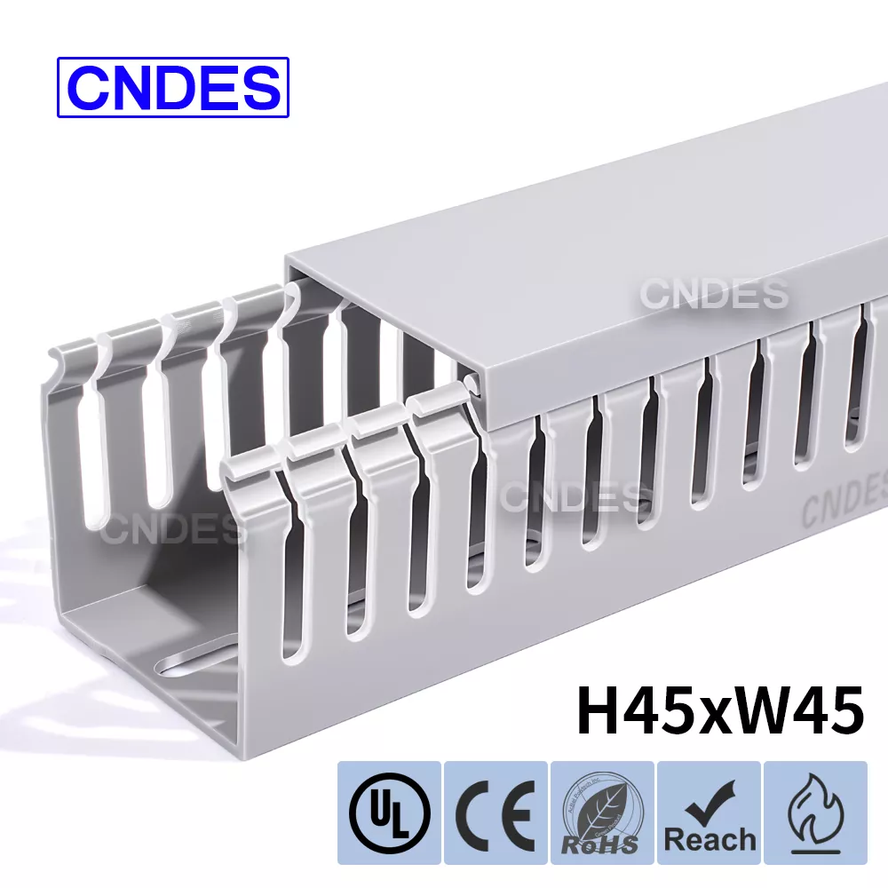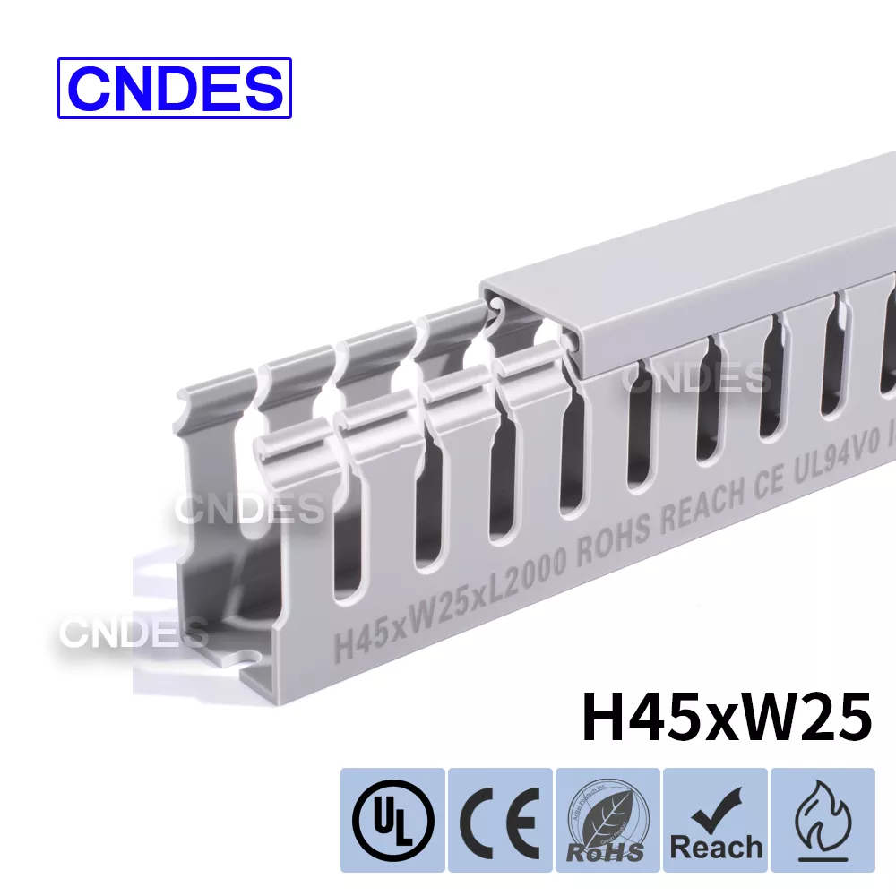 Као професионални произвођач, желели бисмо да вам обезбедимо ЦНДЕС канал са ПВЦ жицом са прорезима висине 45 мм. Укључујући 45*25, 45*33, 45*45.