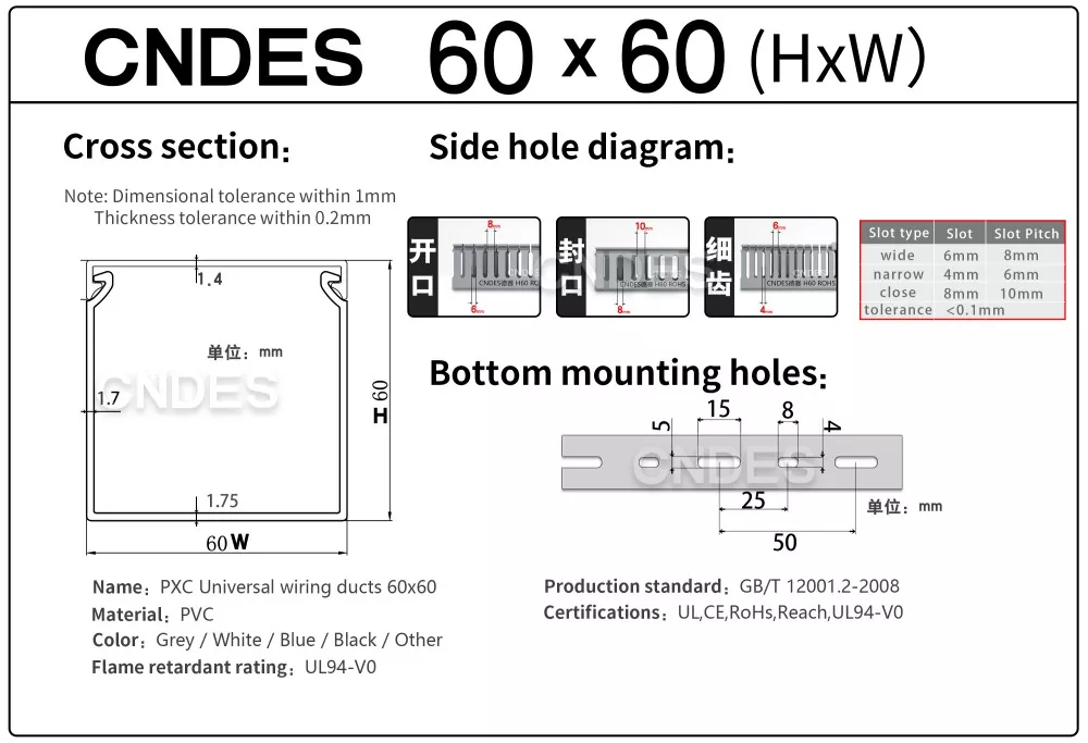 Кабелски канал 60×60 ПВЦ контролног ормара је компактно решење за управљање ожичењем великог капацитета дизајнирано за модерне електричне контролне ормаре, аутоматске панеле и индустријска кућишта. Произведен од стране ЦНДЕС-а, професионалног произвођача и добављача ПВЦ канала за ожичење у Кини, овај канал обезбеђује чисто постављање каблова, поуздану изолацију и дугорочну издржљивост за системе управљања високог стандарда.