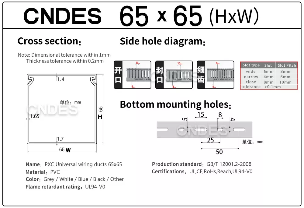 Као професионални произвођач, желели бисмо да вам пружимо ЦНДЕС прорезе 65×65 ПВЦ кабловску стазу.